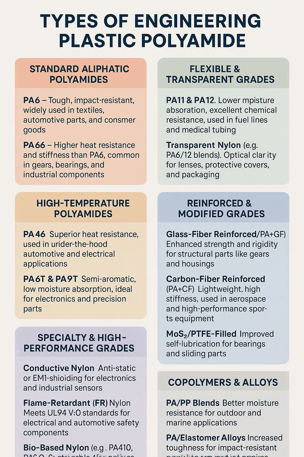 Types de Ingénierie en plastique polyamide