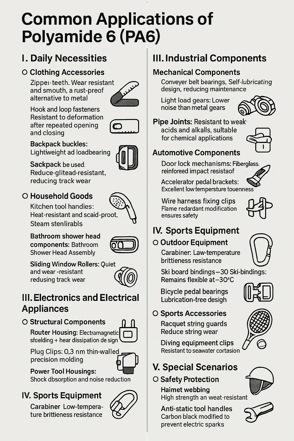 Ce qui suit est une introduction aux applications courantes de polyamide 6 (PA6) :